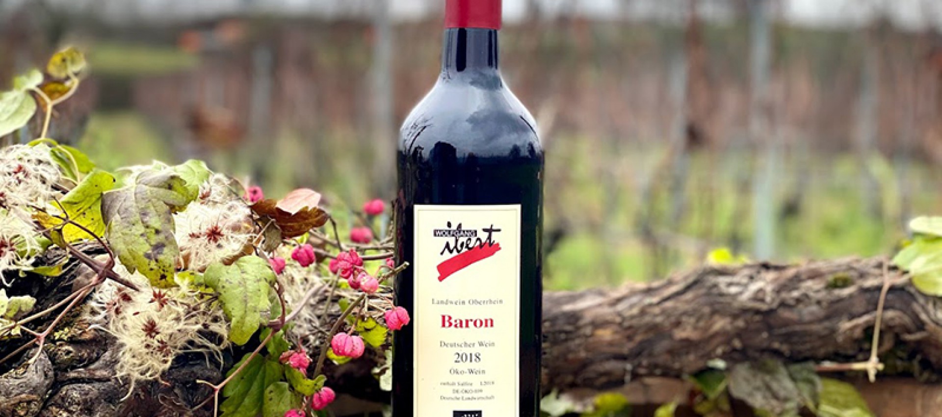 Baron ist eine Kreuzung zwischen Cabernet Sauvignon und bronner und wurde durch Norbert Becker am Freiburger WEinbauinstitut gezüchtet. Der Name Baron spielt auf den noblen Charakter des Weines an.