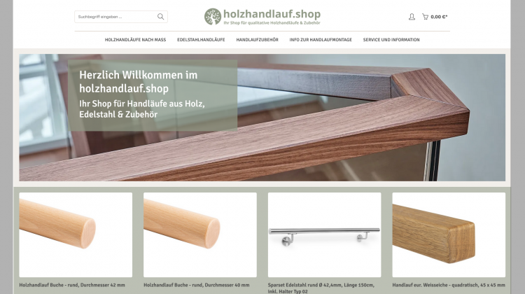 Das Angebot umfasst hochwertige Handläufe und Treppengeländer aus verschiedensten Holzarten – innen zum Beispiel Buche, Eiche, Ahorn, Esche, Mahagoni, Nussbaum oder Kirschbaum, außen etwa Kambala und Lärche. Kunden konfigurieren die Produkte online nach Maß: Form, Länge, Oberfläche, Fräsnut, Endenbearbeitung und Halter. Der Shop trägt das Trusted Shops Siegel.